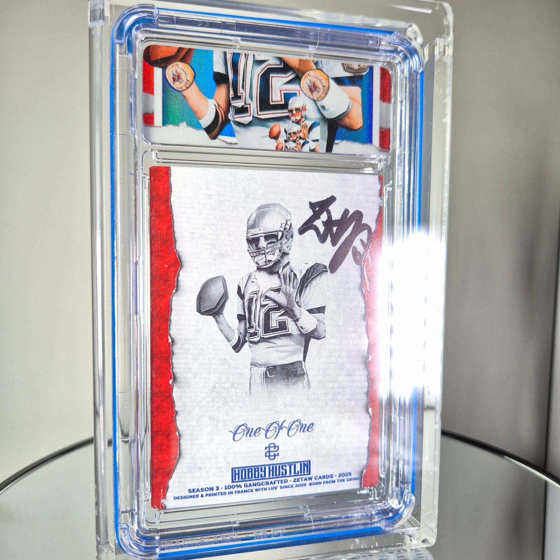 All 1/1 cards are delivered in branded black boxes, in their slab, and with a label identifying the card and its specifications. The cards are hand-signed by the artist on the back, come with a certificate of authenticity